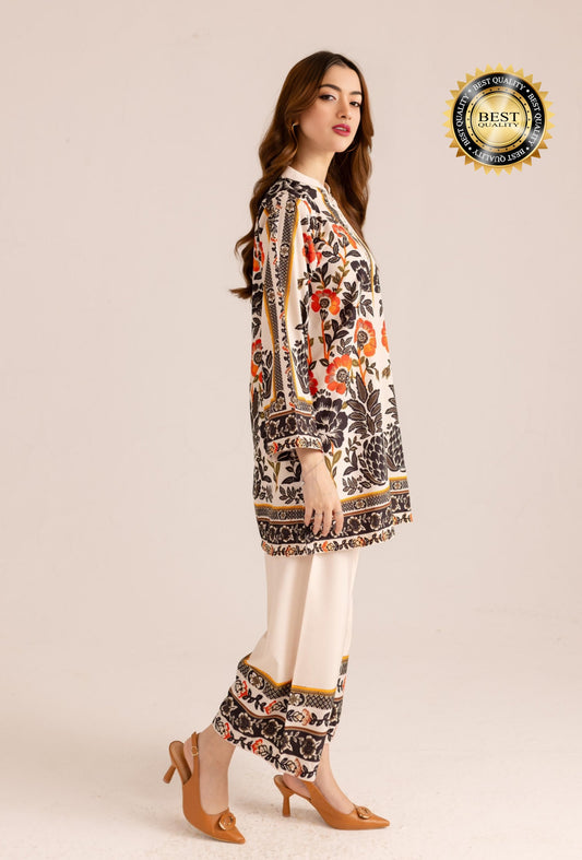 Off White Pure Crepe Printed Co-ord Set