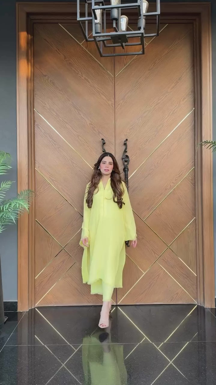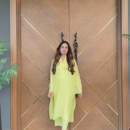 The Lime Amber Bloom Co-Ord Set is a relaxed set for all age groups and body types that's comfortable yet stylish. Features a button down tunic paired with straight pants and shredded to add some detail and a sense of sophistication to the set. Please note, it's a loose fit kurta, please size down in case you want a fitted look